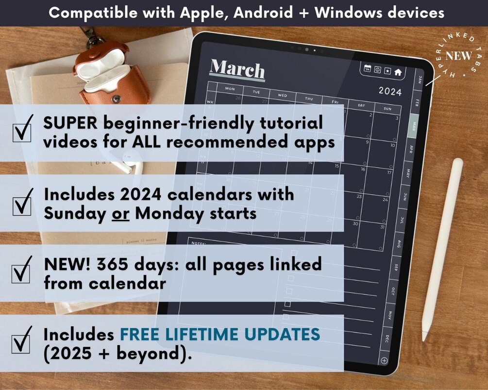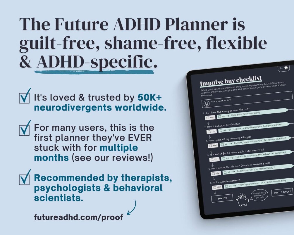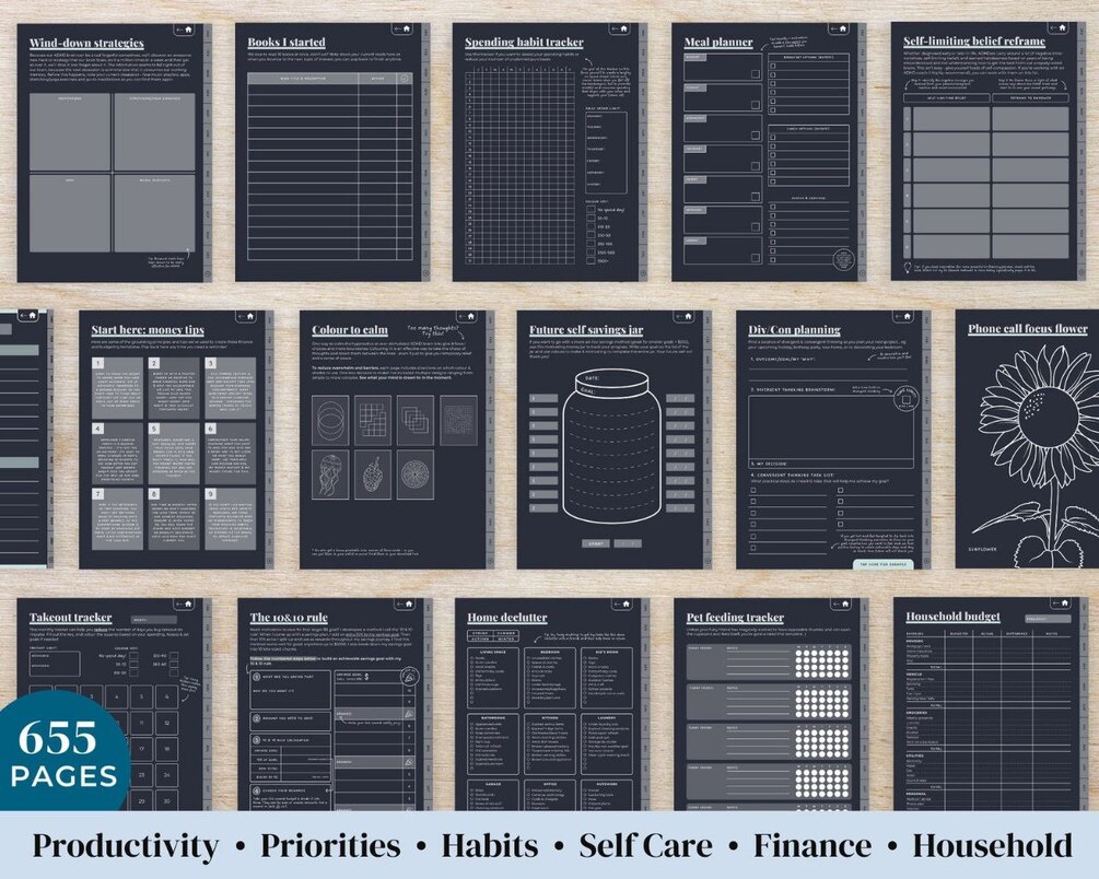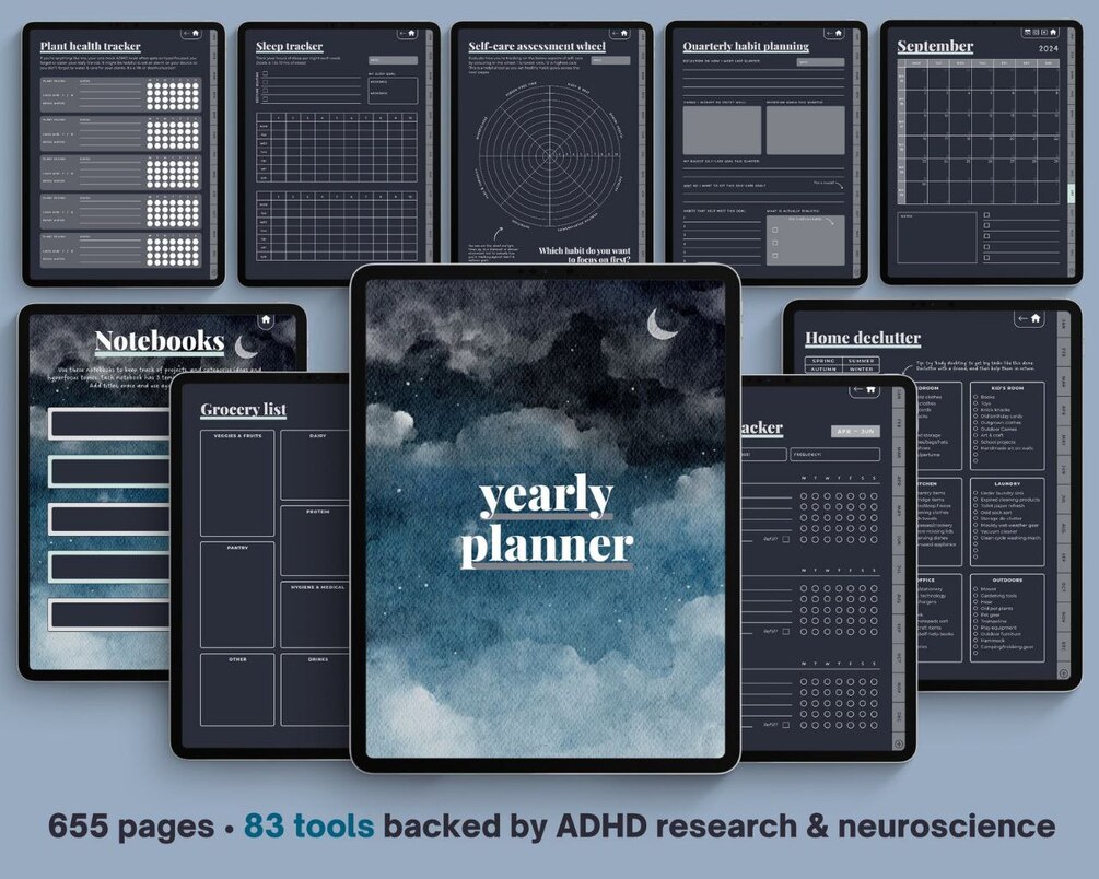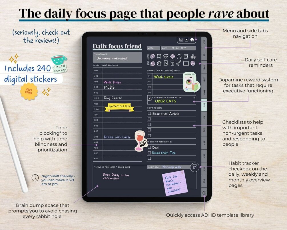 ADHD Digital Planner for ipad, Goodnotes + Android. Adult ADD daily planner, self care & habit tracker. Science based.